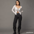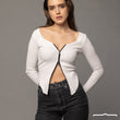 This double-sided zipper top in White features a stretchy material that perfectly complements your body's shape, ensuring a chic and edgy look for any occasion.